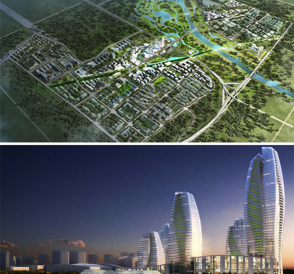 北京未来科学城选址在昌平区小汤山镇和北七家镇的交界地区,东距首都机场仅10公里,位置优越,交通便利;北京的母亲河温榆河穿城而过,整体绿化面积超过50%,生态良好,环境优美。项目占地面积约16平方公里,分为两期开发建设。一期规划占地面积10平方公里,以温榆河和定泗路为界分为南北两区,北区占地面积为2.19平方公里,入驻6家央企;南区占地面积为4.46平方公里,入驻9家央企;两区之间生态绿地面积为3.54平方公里。一期规划总建筑面积约800万平方米,总投资约1000亿元,建成后工作人口10万人,居住人口4万人。