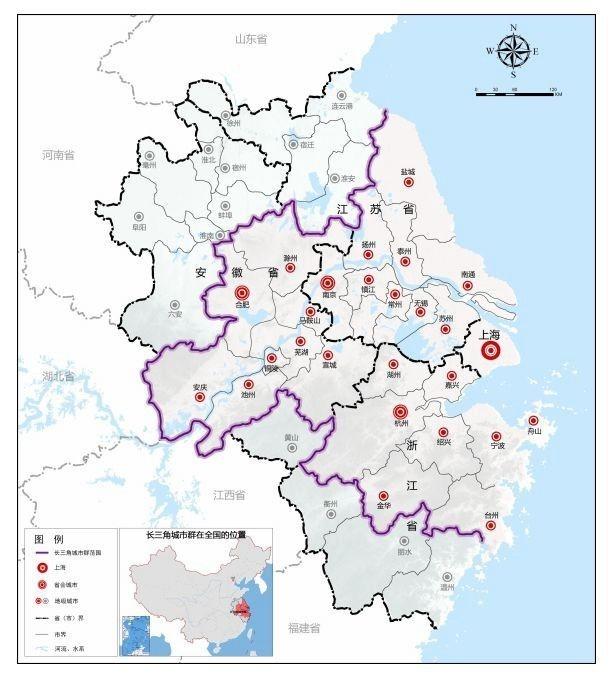长三角城市群范围图 图片来源:《长江三角洲城市群发展规划》